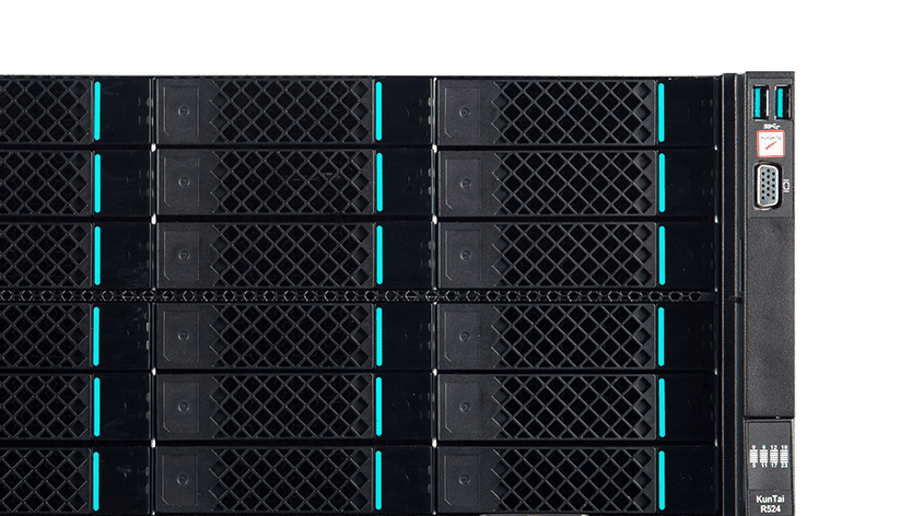 KunTai R524 存储型服务器是利来国际数码基于鲲鹏处理器推出的新一代 ARM数据中心服务器。主要面向存储业务,具有海量存储、高性能、低功耗以及易扩展的特点,适合为大数据分析、软件定义存 储等应用场景的工作负载进行髙效加速。